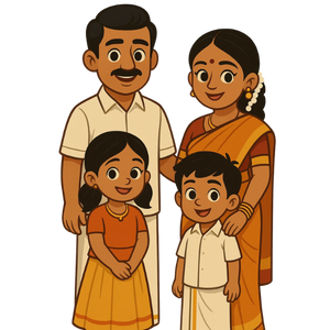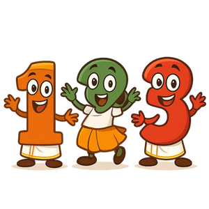 An illustration showing children riding a bullock cart through green Tamil fields, representing Playwithtamil’s cultural connection to Tamil heritage and learning.