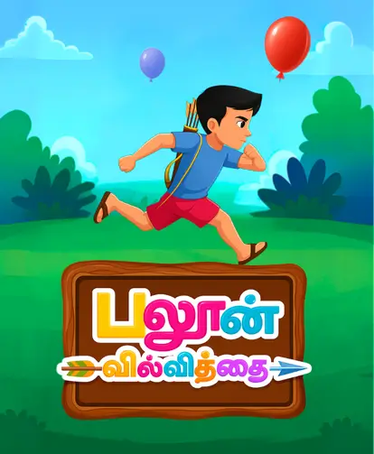An illustration showing children riding a bullock cart through green Tamil fields, representing Playwithtamil’s cultural connection to Tamil heritage and learning.